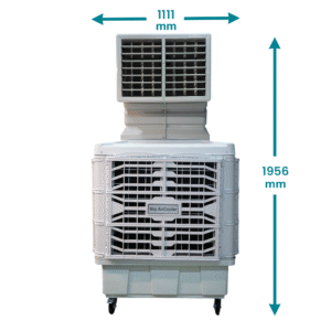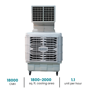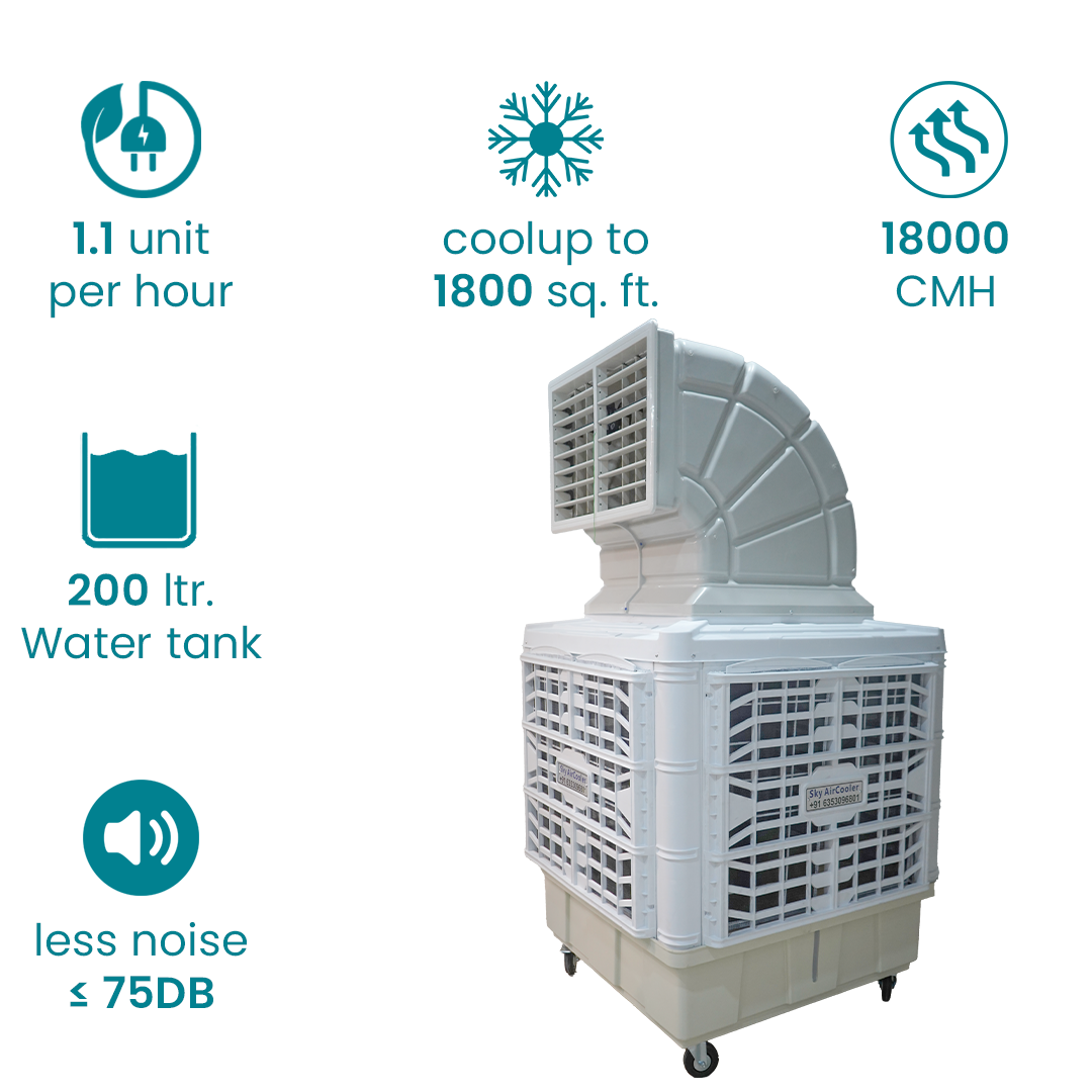 Sky Air Cooler, a leading Earth Commercial Air Cooler manufacturer, offers an efficient, eco-friendly solution for large spaces. The Earth Commercial Air Cooler is designed for optimal cooling with a powerful 18000 CMH airflow and a 200-liter water tank. This industrial portable cooler is perfect for warehouses, factories, and other commercial settings that require substantial airflow to regulate temperatures. Its robust design ensures high performance even in tough environments, and the cooling system works efficiently by drawing hot air through moisture-laden pads, releasing cooler air into the space.