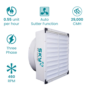 The Skyex 1060 Exhaust Fan from Sky Air Cooler offers an innovative solution to air ventilation in industrial spaces. As a trusted Skyex 1060 Exhaust Fan Manufacturer, we specialize in providing high-performance Industrial Exhaust Fans for various applications, including factories, warehouses, and workshops. The Skyex 1060 Exhaust Fan features a Fan Dia 35 inch, making it ideal for large-scale environments that require efficient air circulation. Its high air delivery rate effectively removes hot air, fumes, and odors, promoting a safer and more comfortable workplace. Constructed from robust, corrosion-resistant materials, the fan can endure the harsh conditions typically found in industrial settings. The fan’s aerodynamic blade design optimizes airflow while maximizing energy efficiency. Simple to install and maintain, the Skyex 1060 Exhaust Fan is a reliable and cost-effective choice for businesses looking to enhance their air quality. As a leading manufacturer of industrial ventilation solutions, Sky Air Cooler provides a variety of exhaust fans, including FRP Exhaust Fans, Roof Top Exhaust Fans, Side Wall Exhaust Fans, and more. Contact us today for more details and pricing on our industrial exhaust fan solutions.