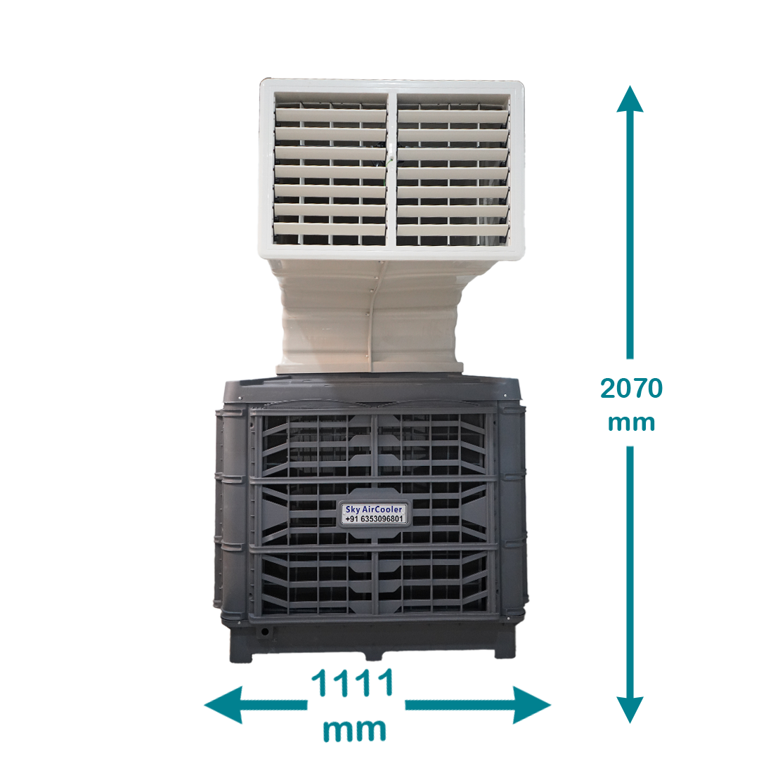 The Uranus Top Discharge Air Cooler by Sky Air Cooler is an advanced, energy-efficient solution designed for large commercial and industrial spaces. With a remarkable airflow rate of 18,000 m³/hr, it efficiently cools areas up to 1,500 to 1800 square feet, providing quick and reliable cooling. This powerful unit features a spacious water tank and a high-performance motor to ensure effective cooling even in large environments. The cooler also comes with a user-friendly control panel, allowing easy adjustments to fan speed and cooling levels based on your specific requirements. Constructed from durable, high-quality materials, the Uranus Top Discharge Air Cooler offers long-lasting performance, making it a cost-effective investment for your cooling needs. As a trusted Uranus Top Discharge Air Cooler manufacturer, Sky Air Cooler guarantees exceptional quality and reliability. For pricing and more details, feel free to contact us today.